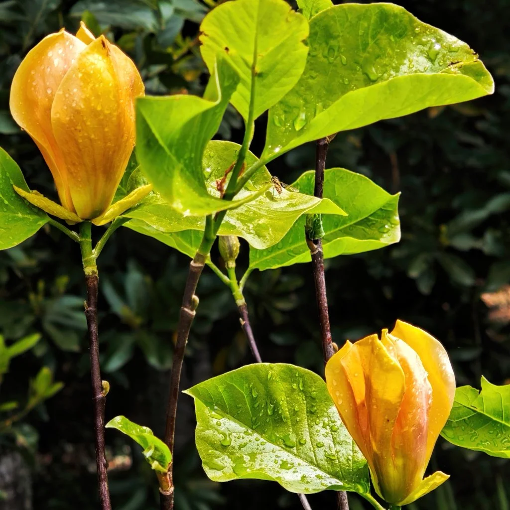 O nosso amigo António Salazar, do Bosque Encantado da Ponta do Sol, sabendo da sua paixão por magnólias e da sua veneração pelas flores dos louros-da-montanha (Kalmia latifolia), ofereceu dois pequenos exemplares desta espécie e duas jovens magnólias-amarelas (Magnolia ‘Judy Zuk’).
